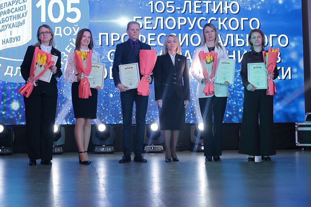 В торжественном мероприятии приняли участие Ирина Владимировна Липченко, заместитель председателя Могилевской областной организации Профсоюза, Виталий Васильевич Подобед, заместитель председателя Бобруйского городского Совета депутатов, Елена Сергеевна Лисица, начальник управления по образованию Бобруйского горисполкома. Лучшим – цветы, почетные грамоты и благодарности.